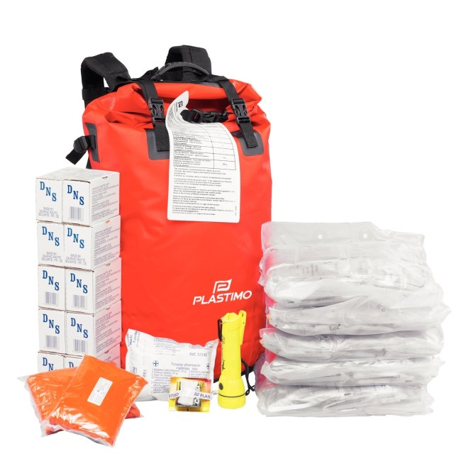 Grab bags (sacs de survie) contenant le minimum indispensable pour la survie immédiate, pour 4, 6, 8 ou 10 personnes.