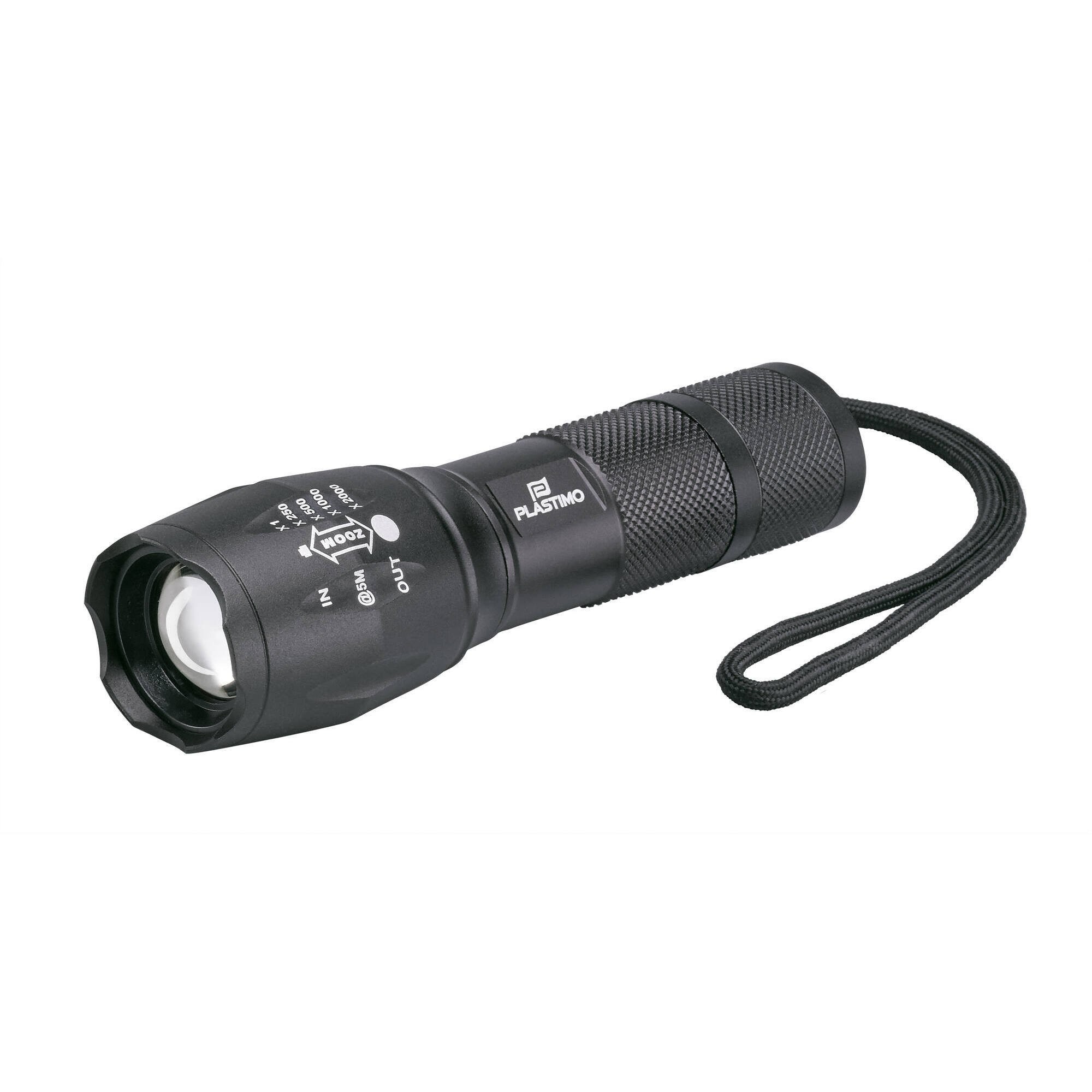 Compacte et multi-usage, cette puissante lampe torche Plastimo à faisceau ajustable offre 5 modes : Fort/Medium/Eco/Flash/SOS.
