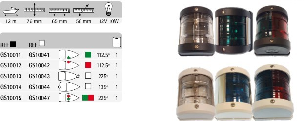| GS10012 | FEU DE NAVIGATION ROUGE -12M | 76 mm | 65 mm | 112,5º | 12V 10W | 12 m | 58 mm |