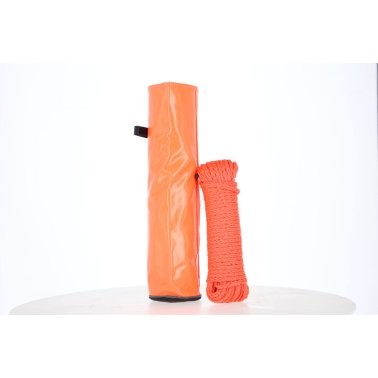 Ligne de jet pour bouée couronne dans un sac PVC avec filet d'évacuation pour l'eau.